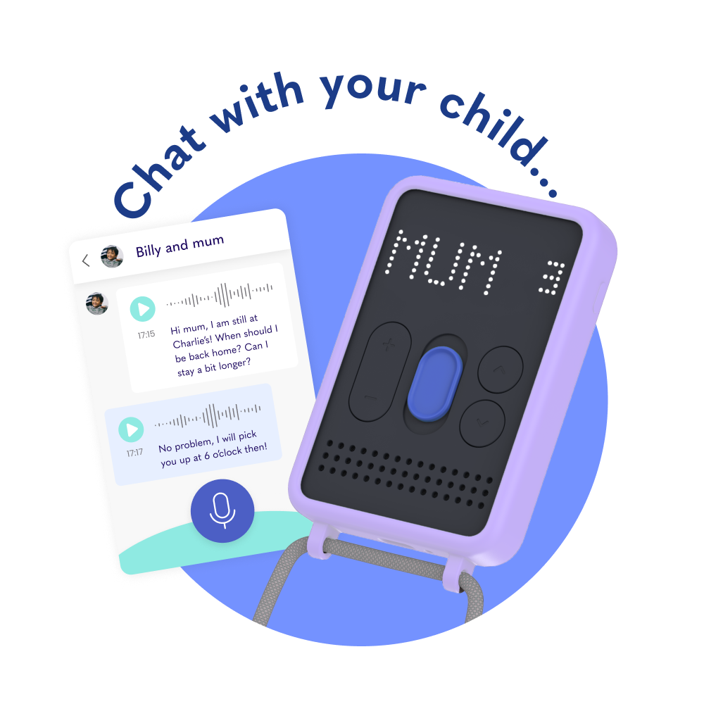 Send quick voice notes between your phone and their Karri Messenger, and bring trusted adults into the loop for private family chats.