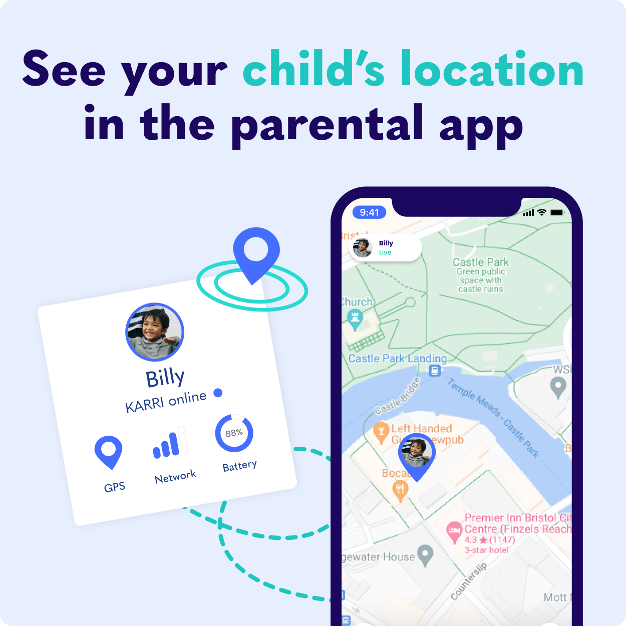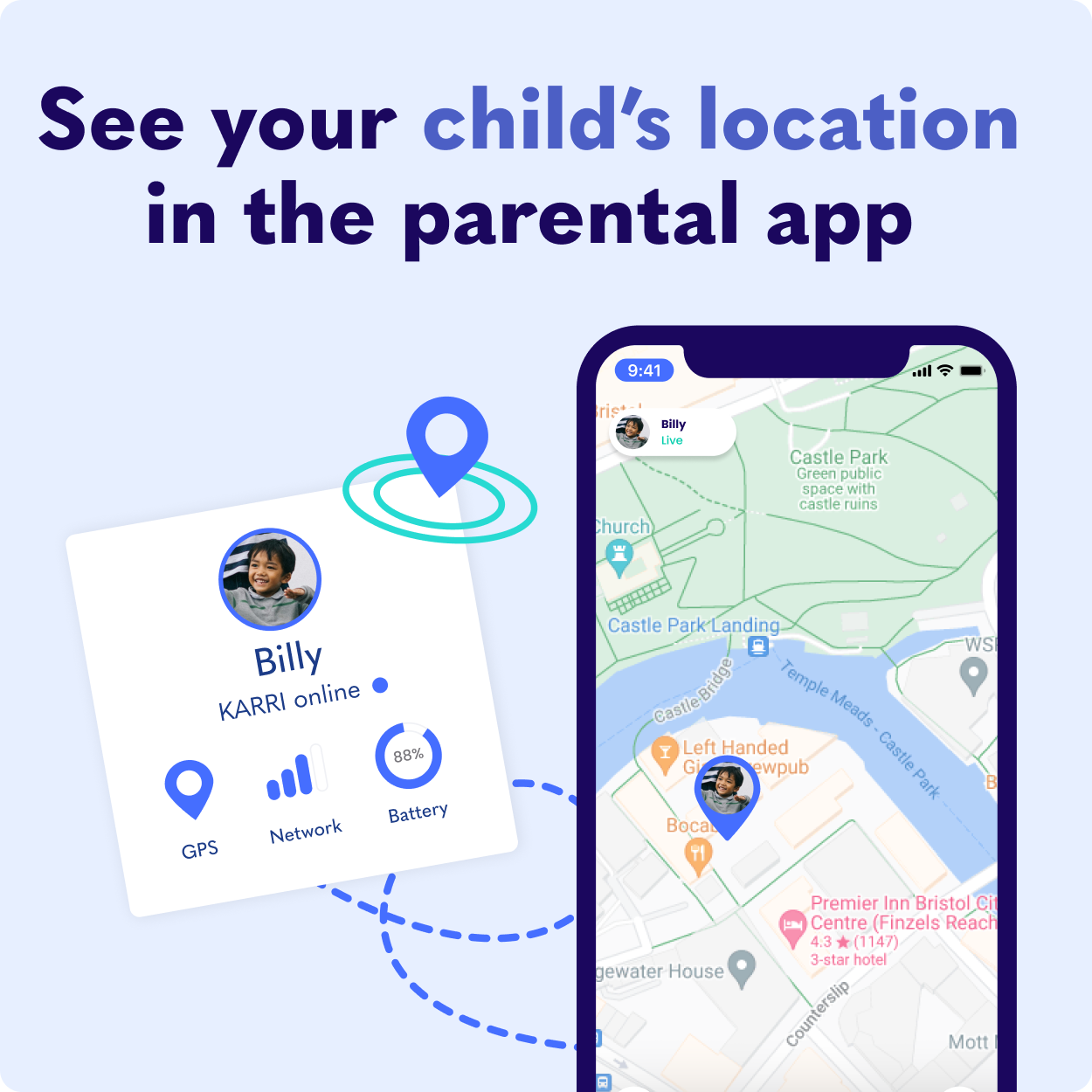Connects to parental app